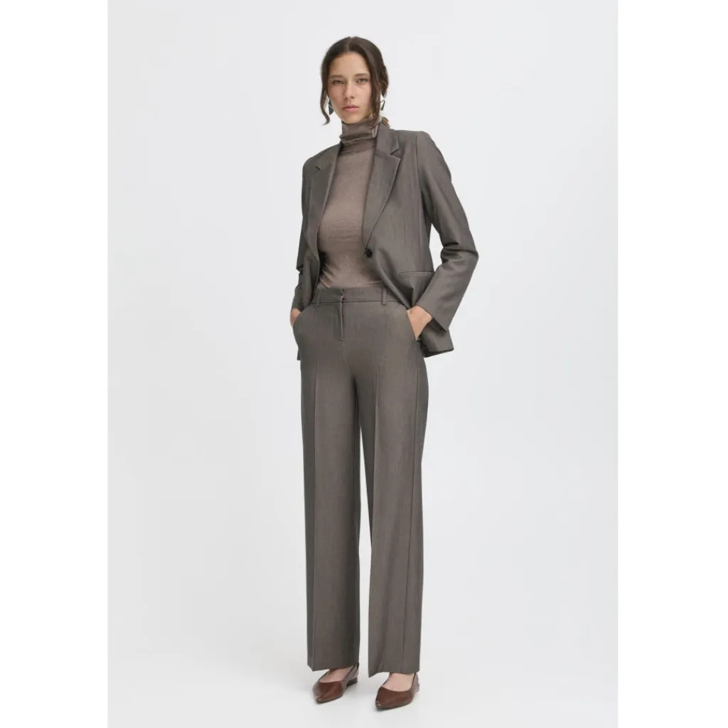 Bukser fra b.young som er normale i taljen, og har en “regular” pasform, de er vide i benene.