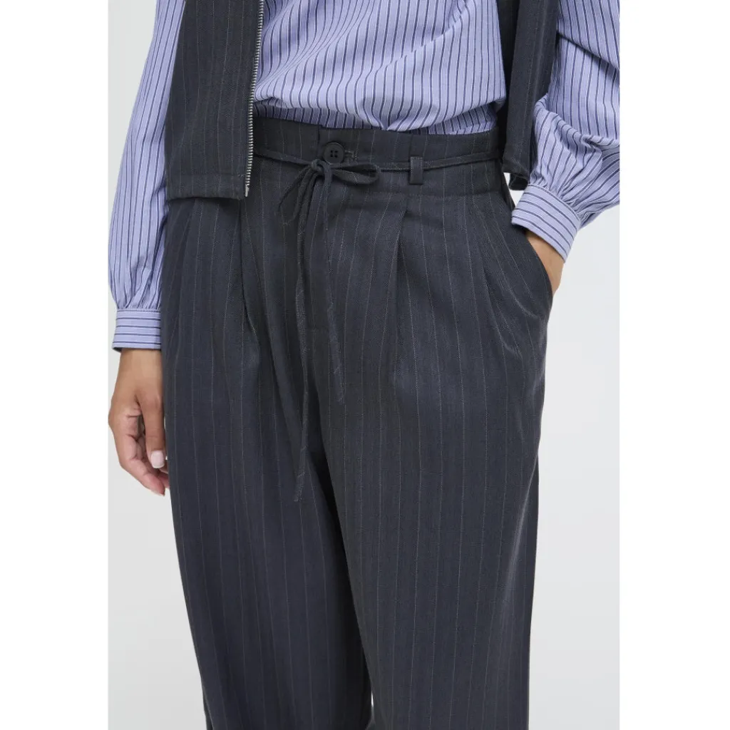 Smukke feminine bukser fra b.young. Bukserne har striber og bindebånd i taljen. Style dem med et par hæle, og vesten fra samme serie.