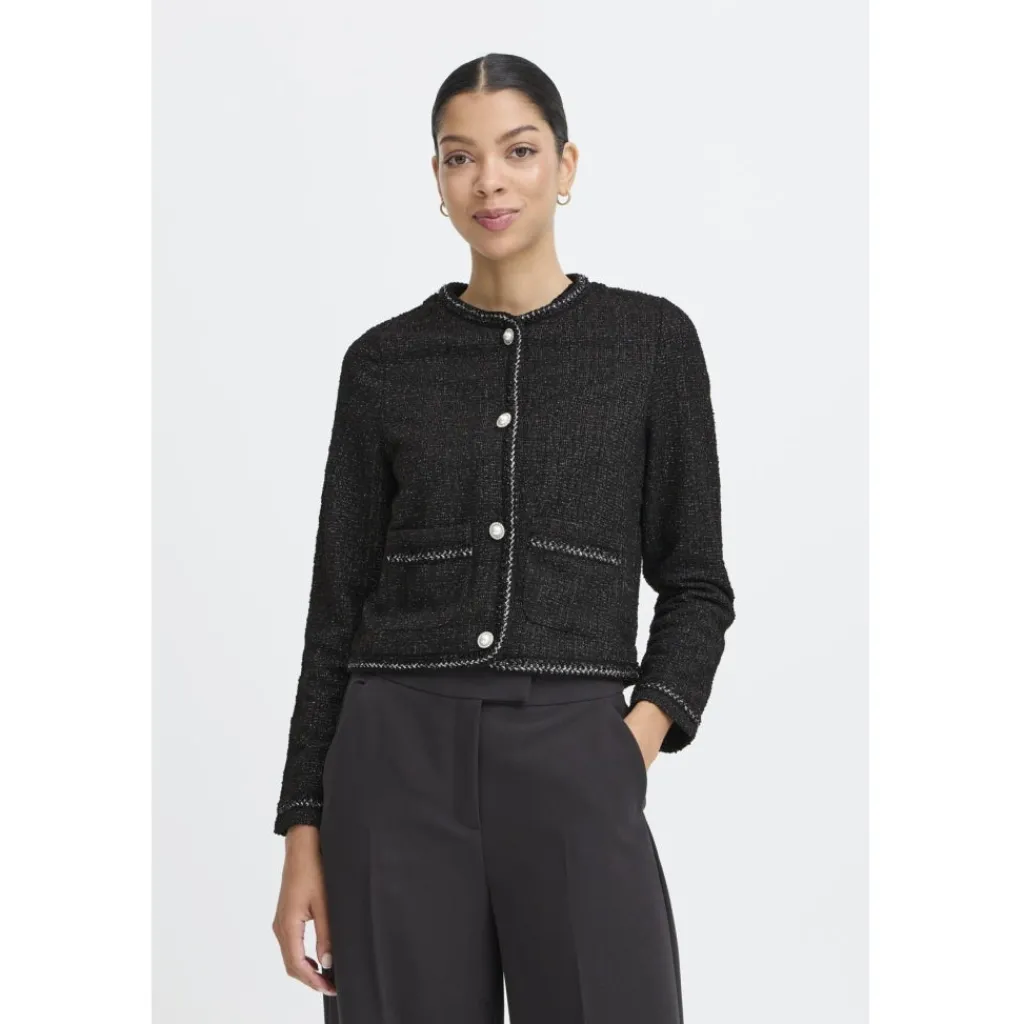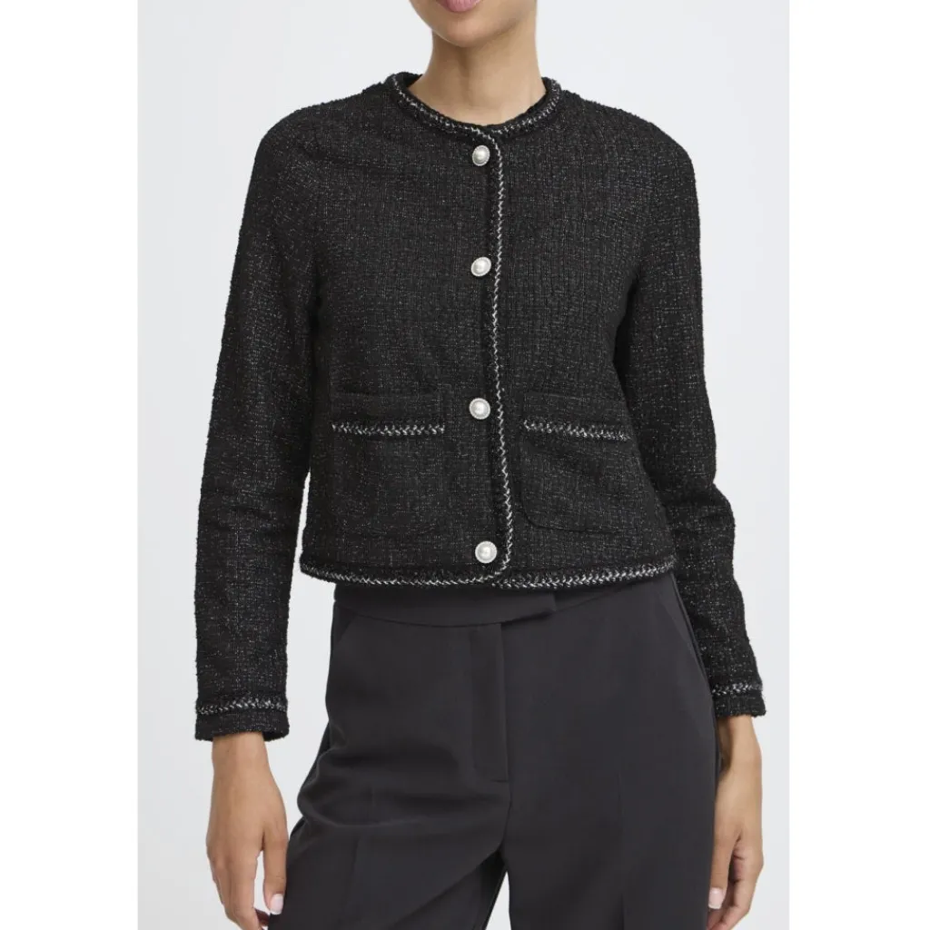 Smart jakke fra B.Young med flotte detaljer. Den har gode lommer, samt gennemgående knapper. Style med et par basis jeans eller habitbukser og et par stiletter til fest.