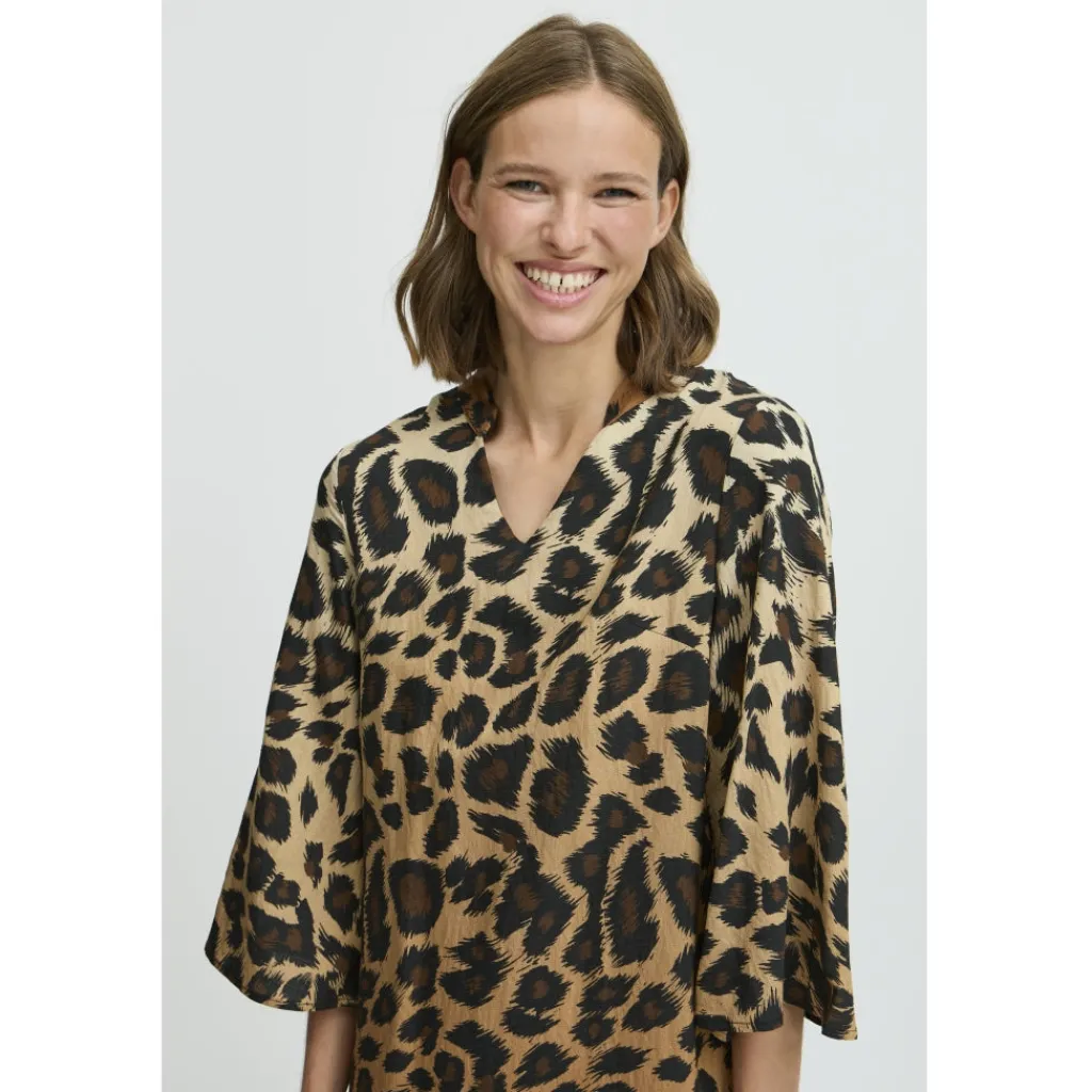 Sej leopardkjole fra b.young med elastik på ryggen der giver en figursyet look.