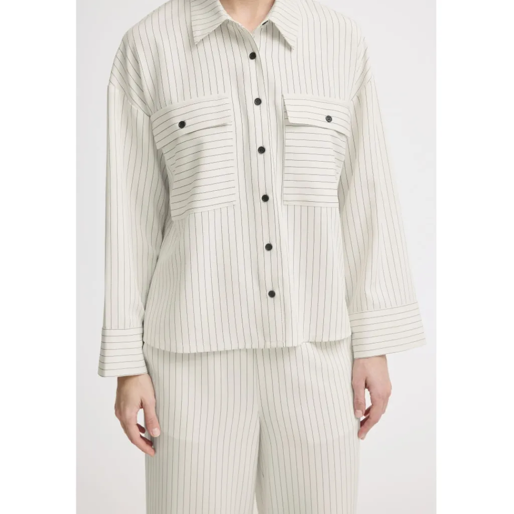 Sejeste stribede skjorte fra b.young. Skjorten er gennemknappet og har brystlommer. Super cool og kan matches med bukserne fra samme serie for et komplet, sejt look.