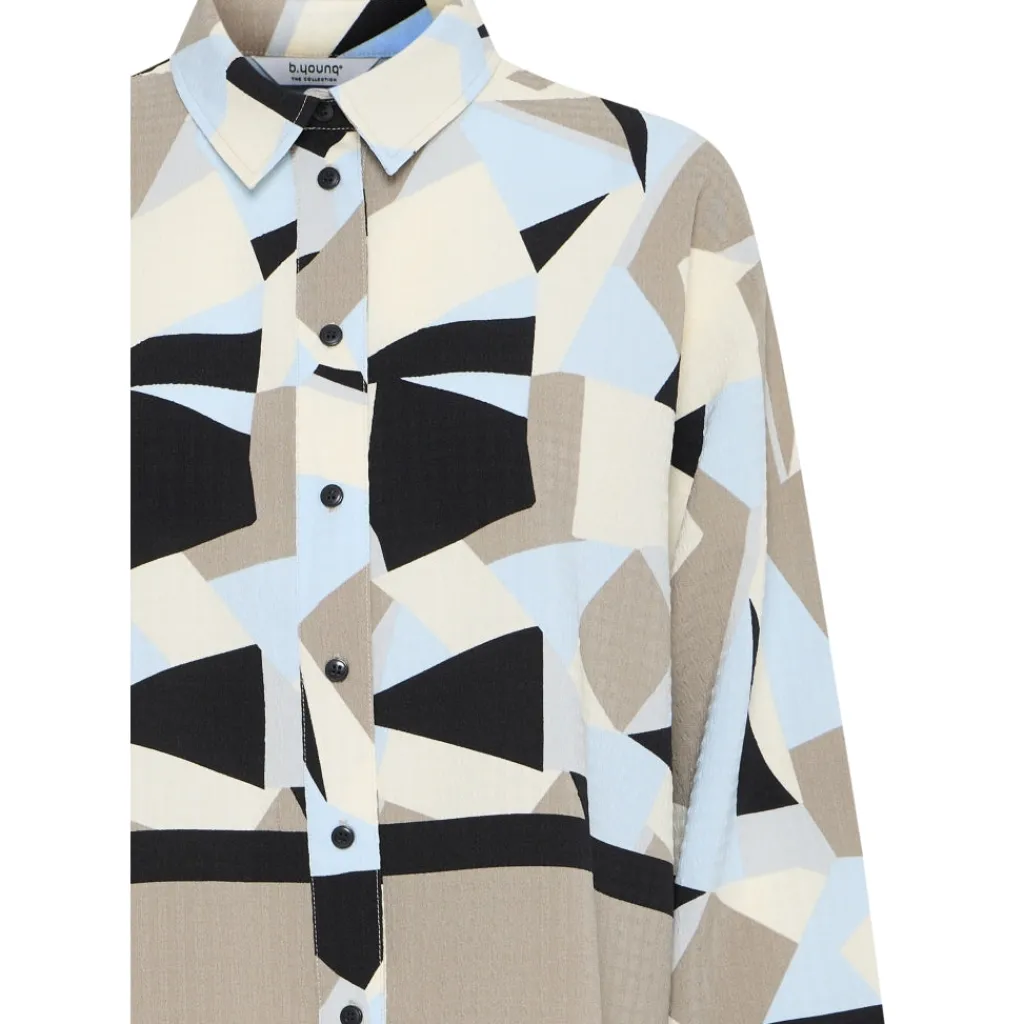 Trendy skjorte med blockfarver fra b.young. Skjorten har et smukt, unikt print, og kan styles med bukserne fra samme serie.