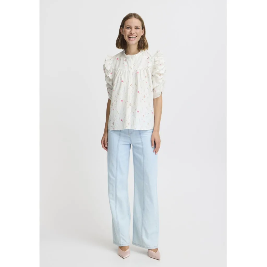 Smuk skjorte med en lille krave og fine ærmer. Skjorten har blomstermotiver og sofistikerede knapper langs fronten. Brug en fin nederdel og ballerinaer og tilføj elegante smykker.