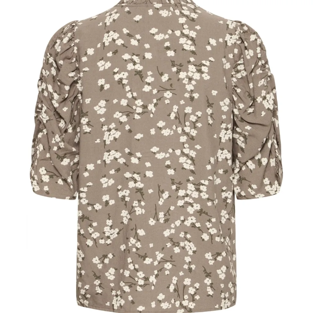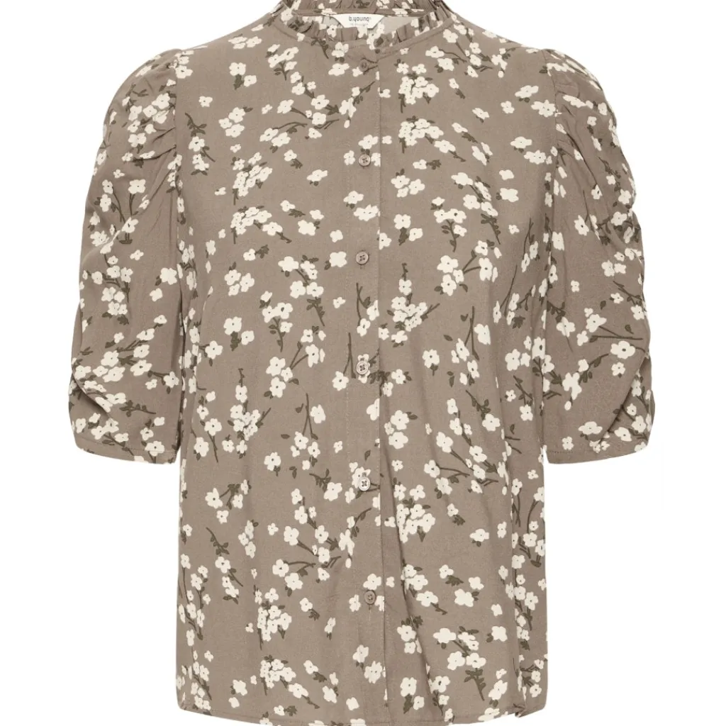 Smuk skjorte med trekvartærmer fra B.Young i flot blomsterprint. Den har flæse-detalje ved halsen, samt rynke-detalje på ærme og gennemgående knapper front. Blusen kan styles med et par strømpebukser og nederdel for et finere look eller et par jeans og sneakers for et mere afslappet look.