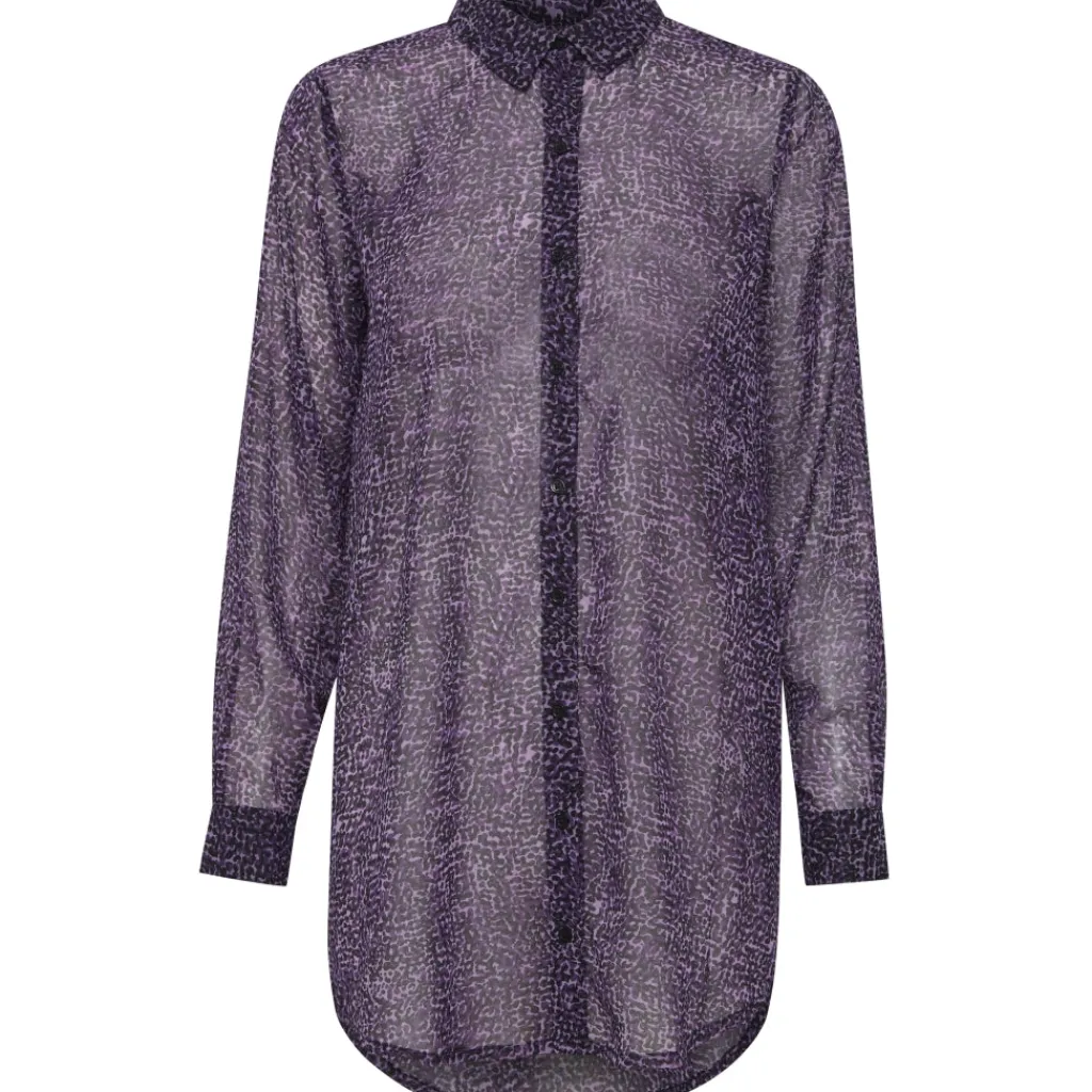 Super lækker skjorte fra ICHI i en gennemsigtig og let kvalitet. Skjorten er lidt længere bagpå og kan styles til et par jeans og støvler.