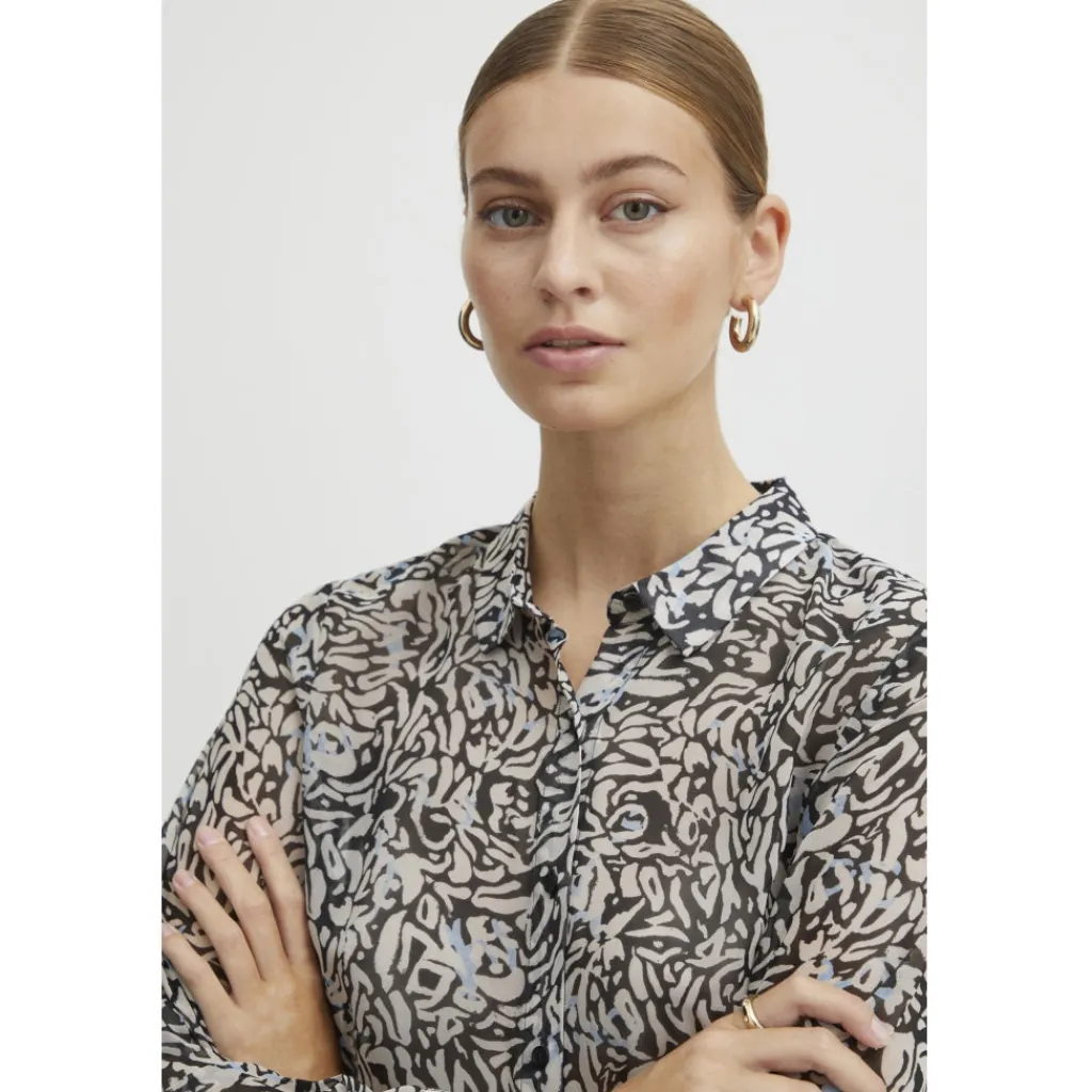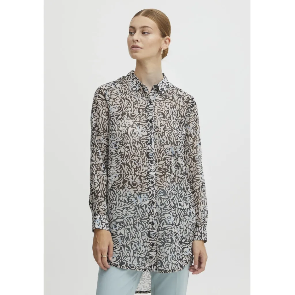Super lækker skjorte fra ICHI i en gennemsigtig og let kvalitet. Skjorten er lidt længere bagpå og kan styles til et par jeans og støvler.