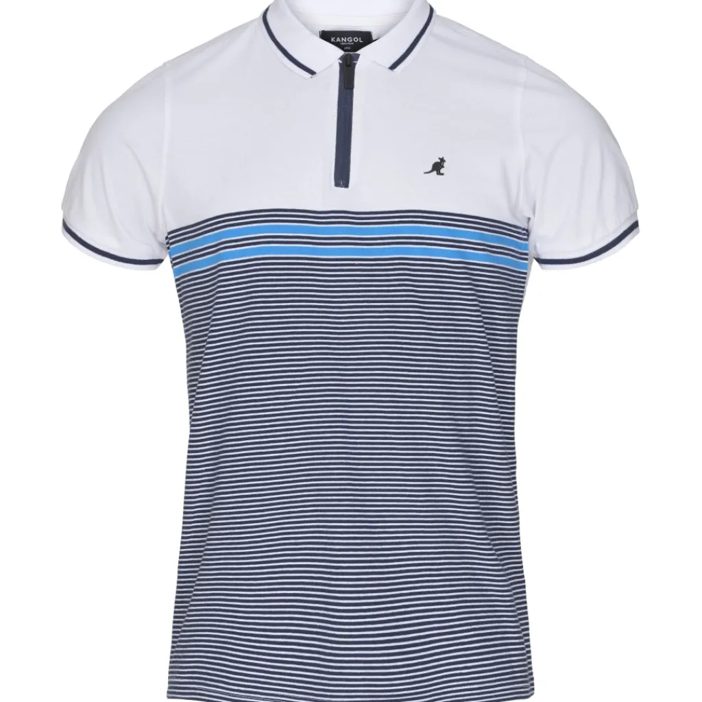 Flot polo fra Kangol med striber og en fin lille krave. Ved halsen er en lille lynlås, så den kan åbnes lidt op.