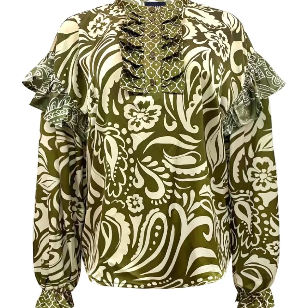 Utroligt smuk printet flæsebluse med fine detaljer fra Liberté. Blusen kan styles med bukserne fra samme serie for et fuldendt look. Brug det til festlige anledninger med et par slingbacks eller stiletter.