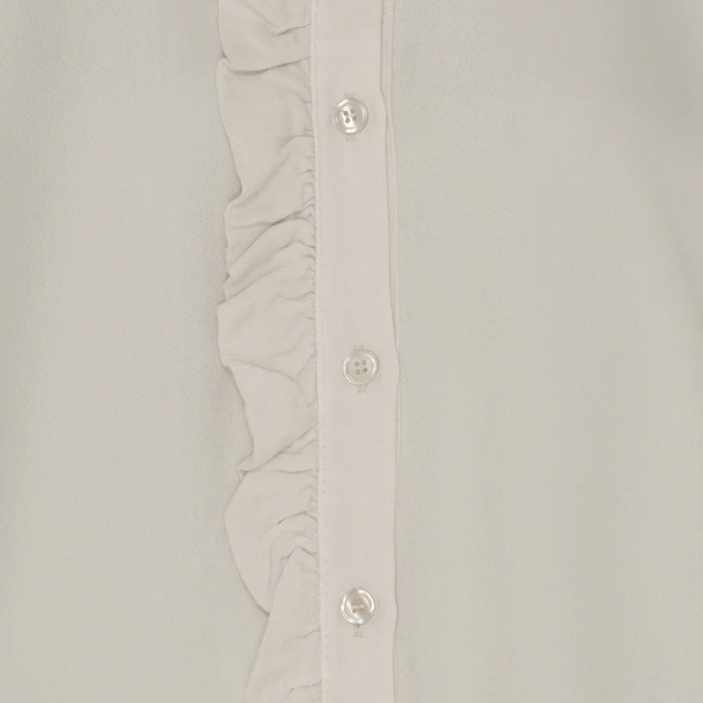 Super fin skjorte fra Lululia med flæsedetaljer. Den har lange ærmer med flæsedetalje, samt gennemgående knapper front. Skjorten kan styles med et par jeans og en lille hæl for et sofistikeret look.