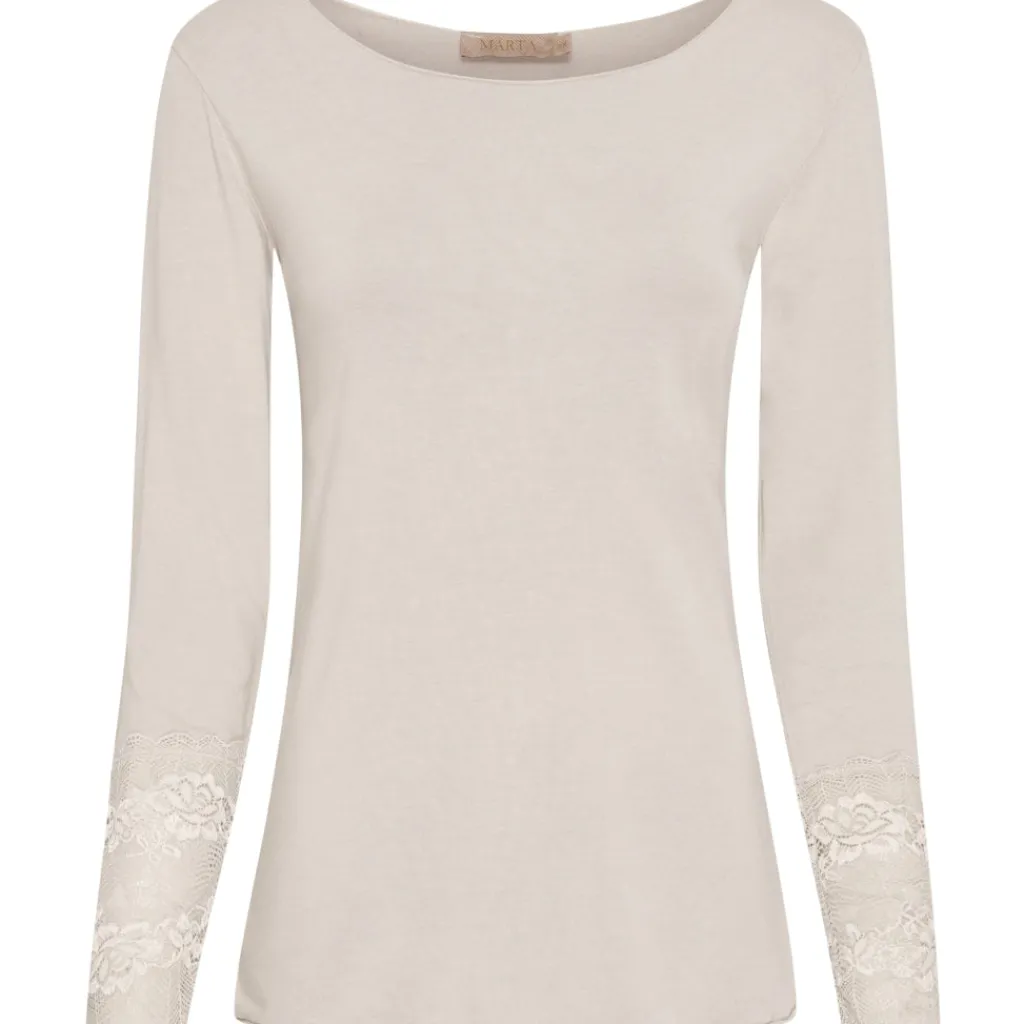Smuk basis bluse med lange ærmer fra Marta Du Cháteau. Blusen har de fineste blondedetaljer ved ærmet (15 cm. blonde ved ærmet)