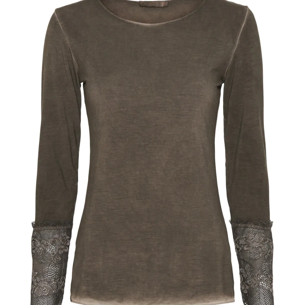 Smuk basis bluse med lange ærmer fra Marta Du Cháteau. Blusen har de fineste blondedetaljer ved ærmet (15 cm. blonde ved ærmet)