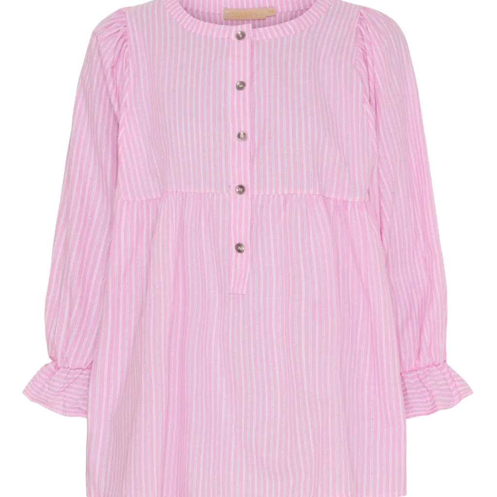Super smuk stribet bluse med flæsedetaljer fra Marta Du Château. Blusen har fine knapdetaljer og kan både styles til hverdag og finere brug. Til hverdag, style den med jeans og sneakers. Til fest, style den med en nederdel og ballerinaer.