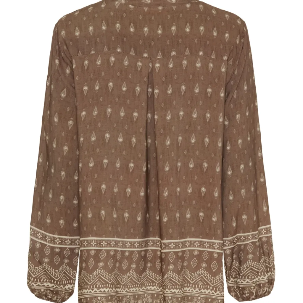 Smuk bluse med feminint mønster fra Marta. Blusen er v-halset og har sofistikerede knapper, og kan både bruges til hverdag og finere anledninger.