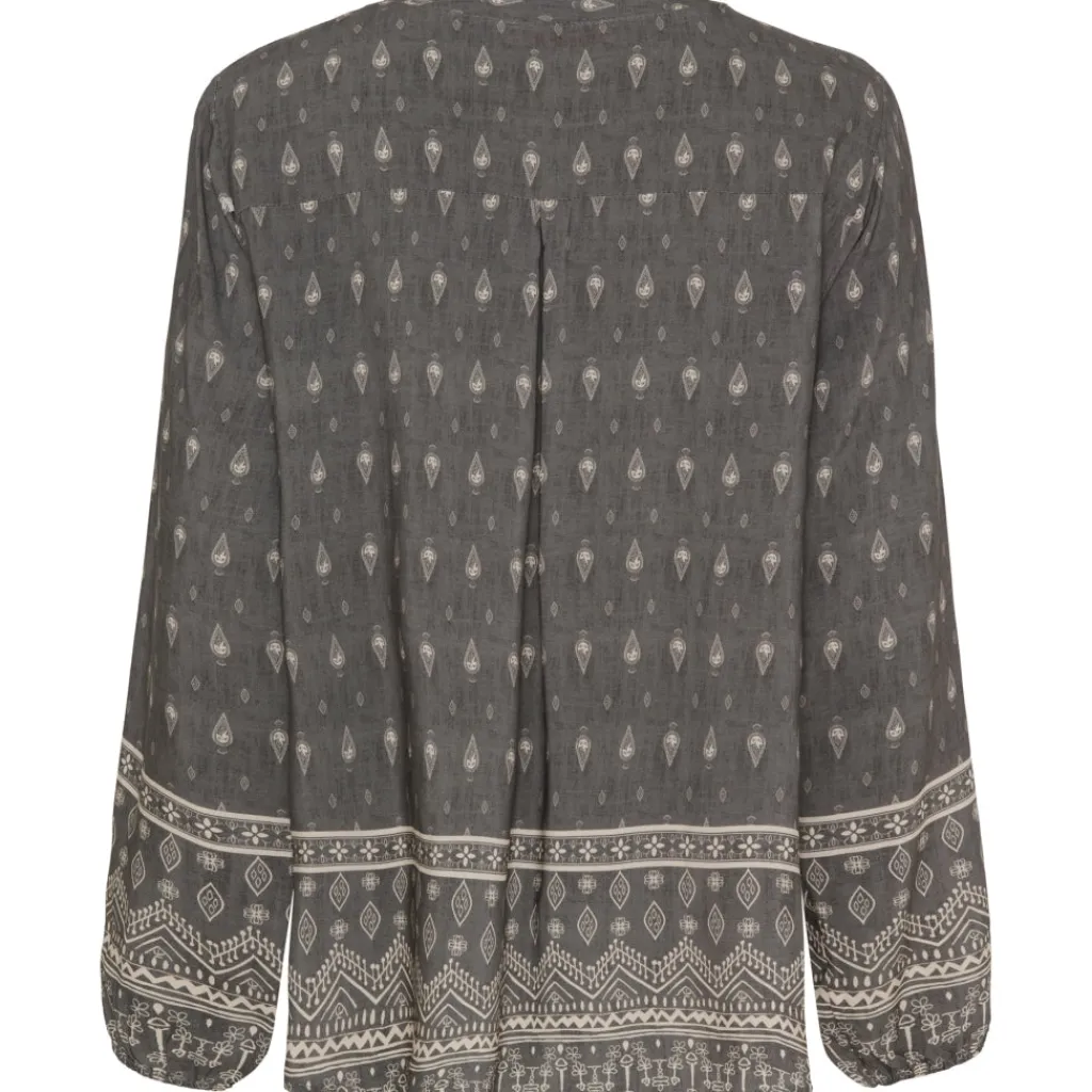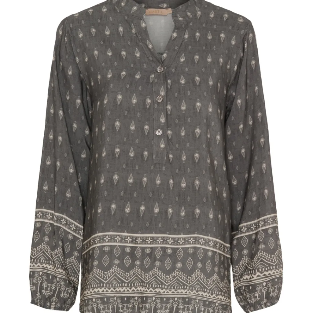 Smuk bluse med feminint mønster fra Marta. Blusen er v-halset og har sofistikerede knapper, og kan både bruges til hverdag og finere anledninger.