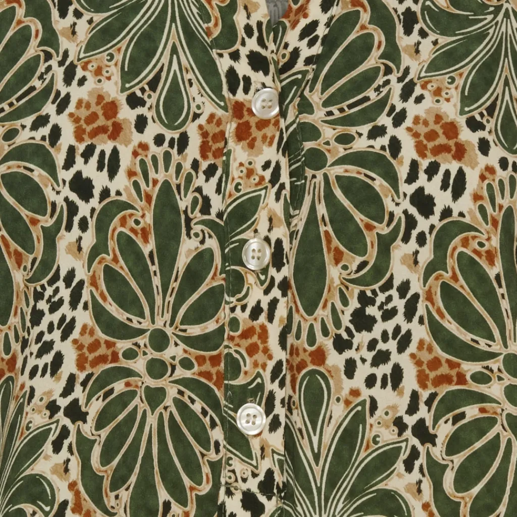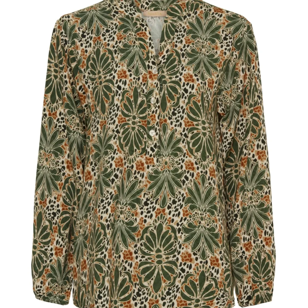Smuk bluse med feminint mønster fra Marta. Blusen er v-halset og har sofistikerede knapper, og kan både bruges til hverdag og finere anledninger.