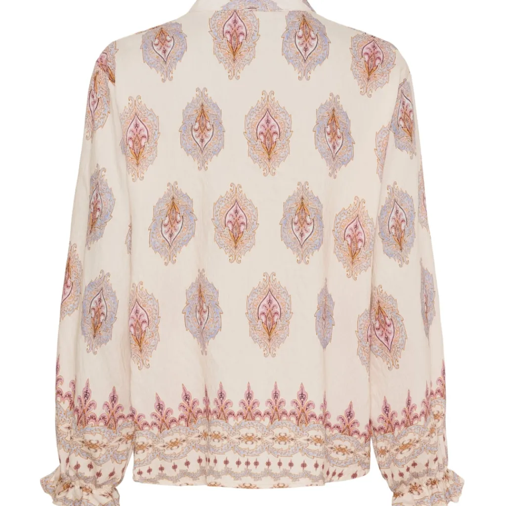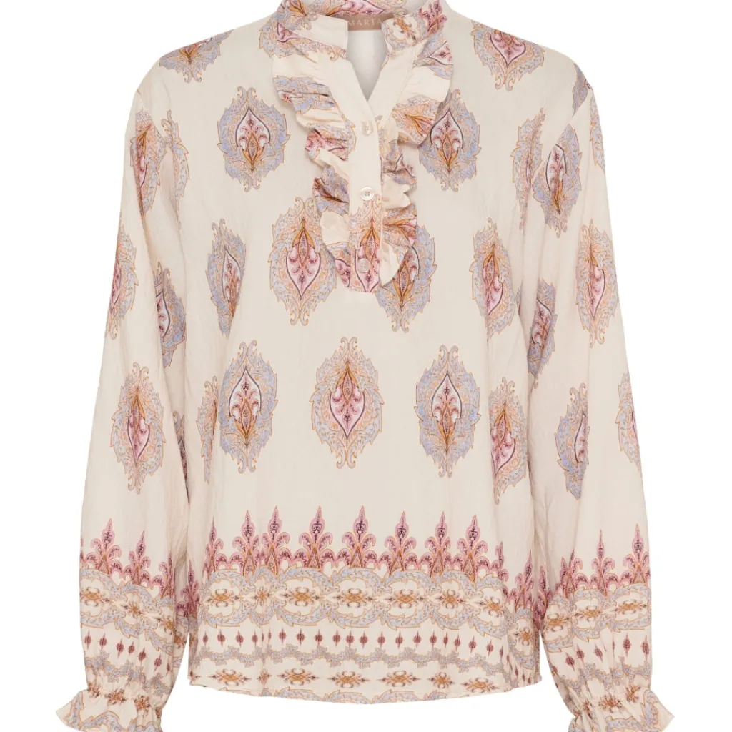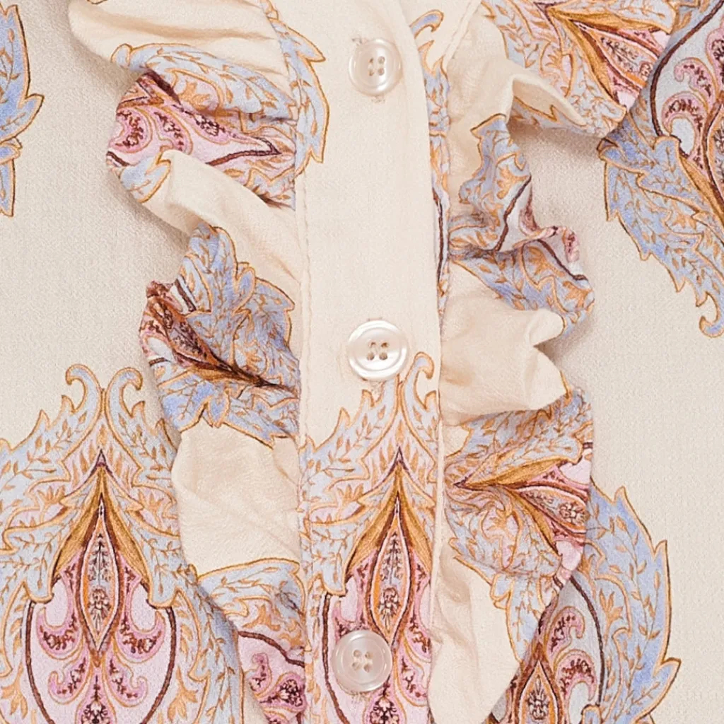 Elegant bluse fra Marta Du Château med de fineste detaljer. Blusen har en smule v-hals og de smukkeste flæsedetaljer. Kan både bruges til hverdag med habitbukser og sneakers, og til finere brug med en nederdel og stiletter.