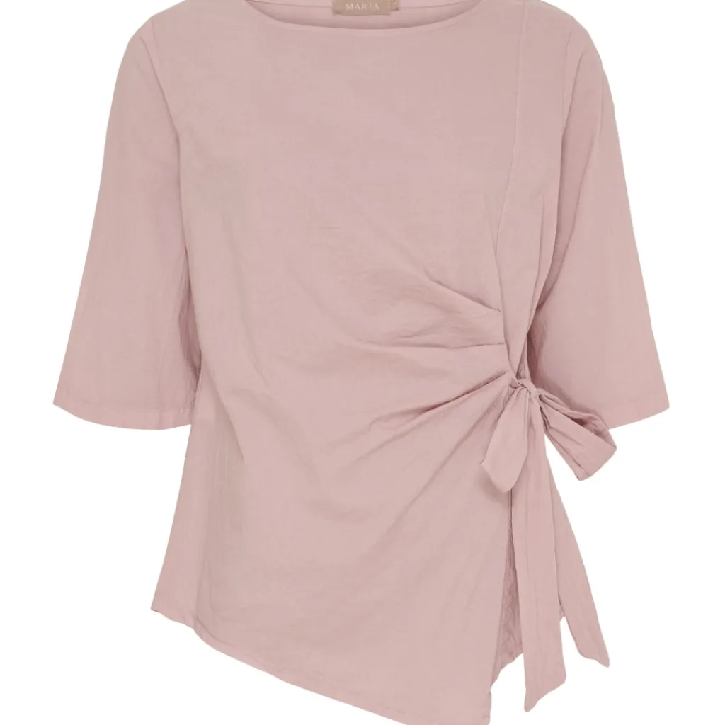 Super fin bluse fra Marta Du Château med sløjfe detalje i siden. Modellen skærer asymmetrisk både foran og bag. Helt perfekt bluse til både hverdag og finere brug.
