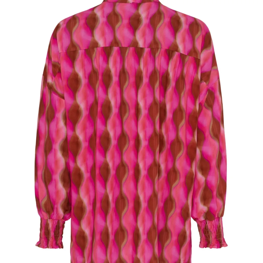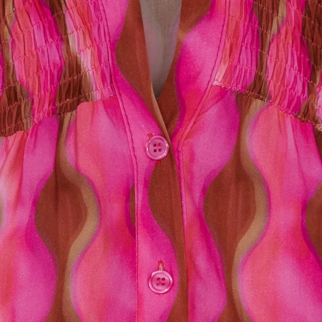 Smart bluse med smock og v-hals fra Marta du Château. Blusen har det fineste print og kan spice et ellers kedeligt outfit op.
