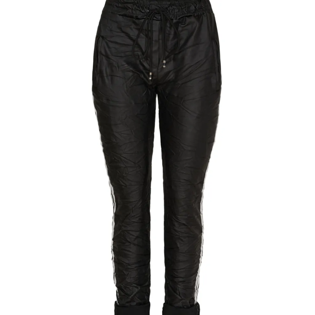 Fede bukser med opsmøg og bindebånd, der giver et stilfuldt look. De er designet med en hvid stribe langs benet, som tilfører et sporty touch. Perfekte til dig der vil udstråle både komfort og kant.