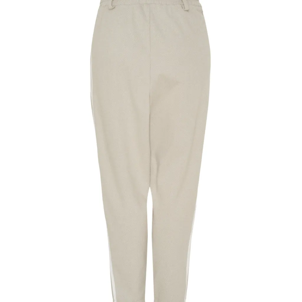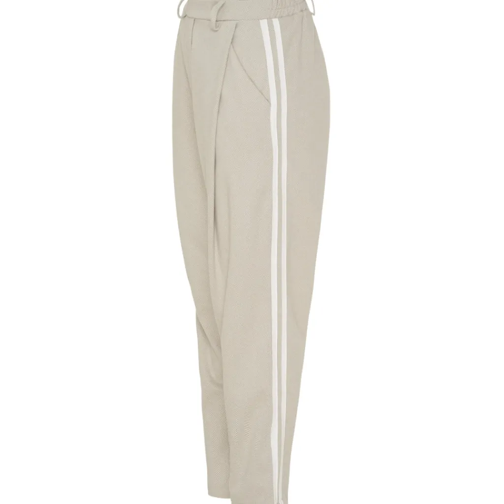 Smarte og komfortable bukser fra Marta Du Château med striber langs begge ben. Bukserne har elastik i taljen . De er super alsidige og kan sættes sammen med vest eller jakke fra samme serie.