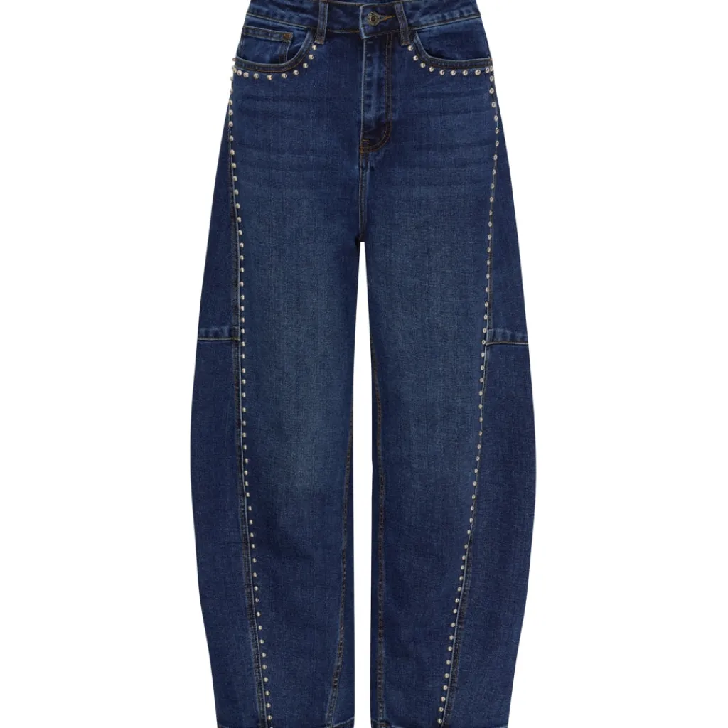Cool baggy jeans fra Marta du Château med nitte-detaljer. Bukserne har knap- og lynlåslukning, samt lommer foran og bag. De kan bruges til ethvert outfit – både med en top og blazer, en strik eller skjorten, som matcher til.