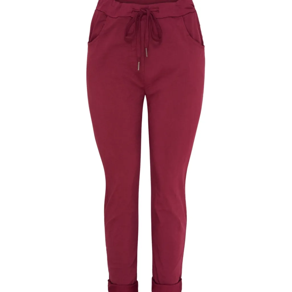 Dejlige og behaglige hverdagsbukser fra Marta du Château med elastik i taljen. Bukserne har opsmøg, snørrer og lommer, og kan både bruges til en skjorte, blazer eller bluse.
