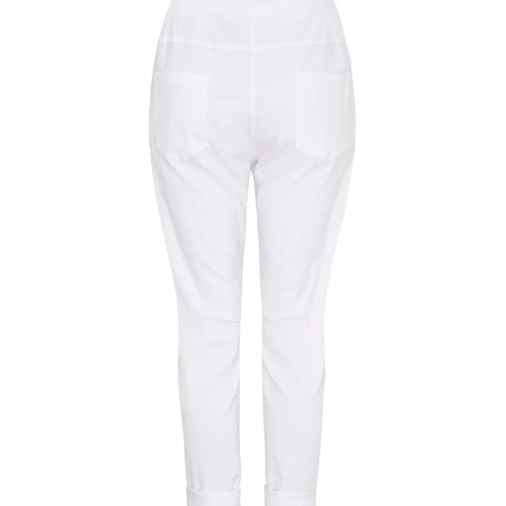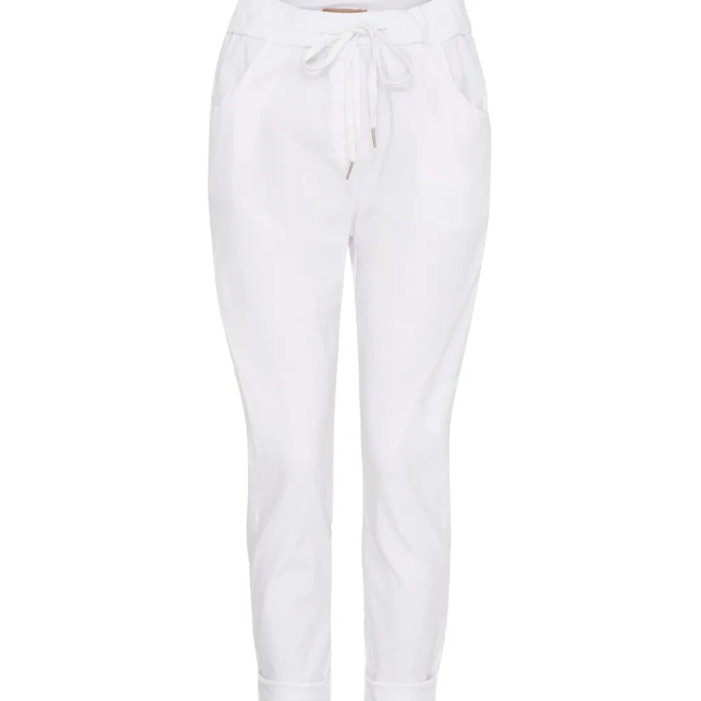 Dejlige og behaglige hverdagsbukser fra Marta du Château med elastik i taljen. Bukserne har opsmøg, snørrer og lommer, og kan både bruges til en skjorte, blazer eller bluse.