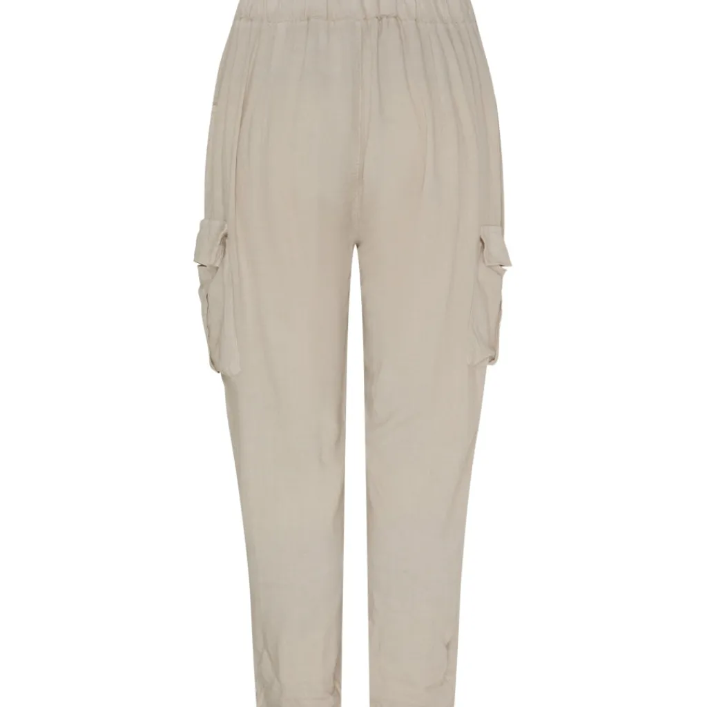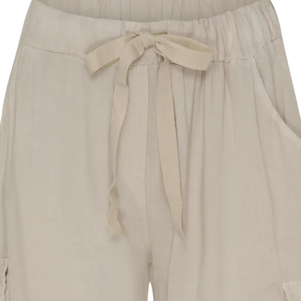 Skønne cargobukser i hørblanding med bindebånd i taljen.
