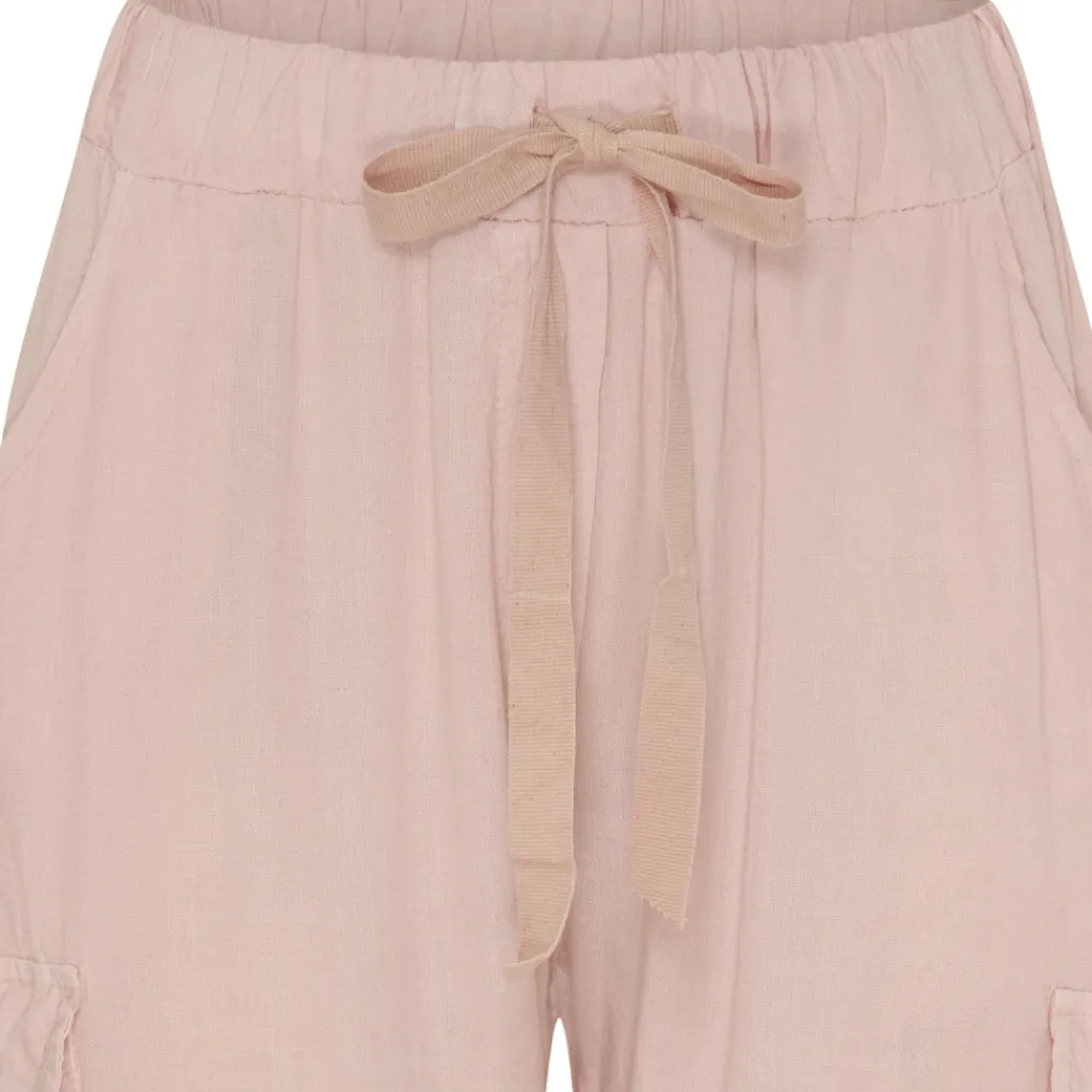 Skønne cargobukser i hørblanding med bindebånd i taljen.