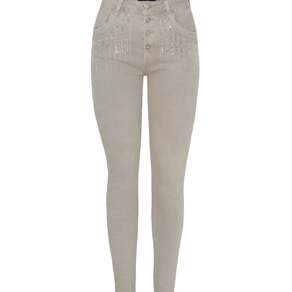 Fine bukser med dekorative sten ved lommerne.