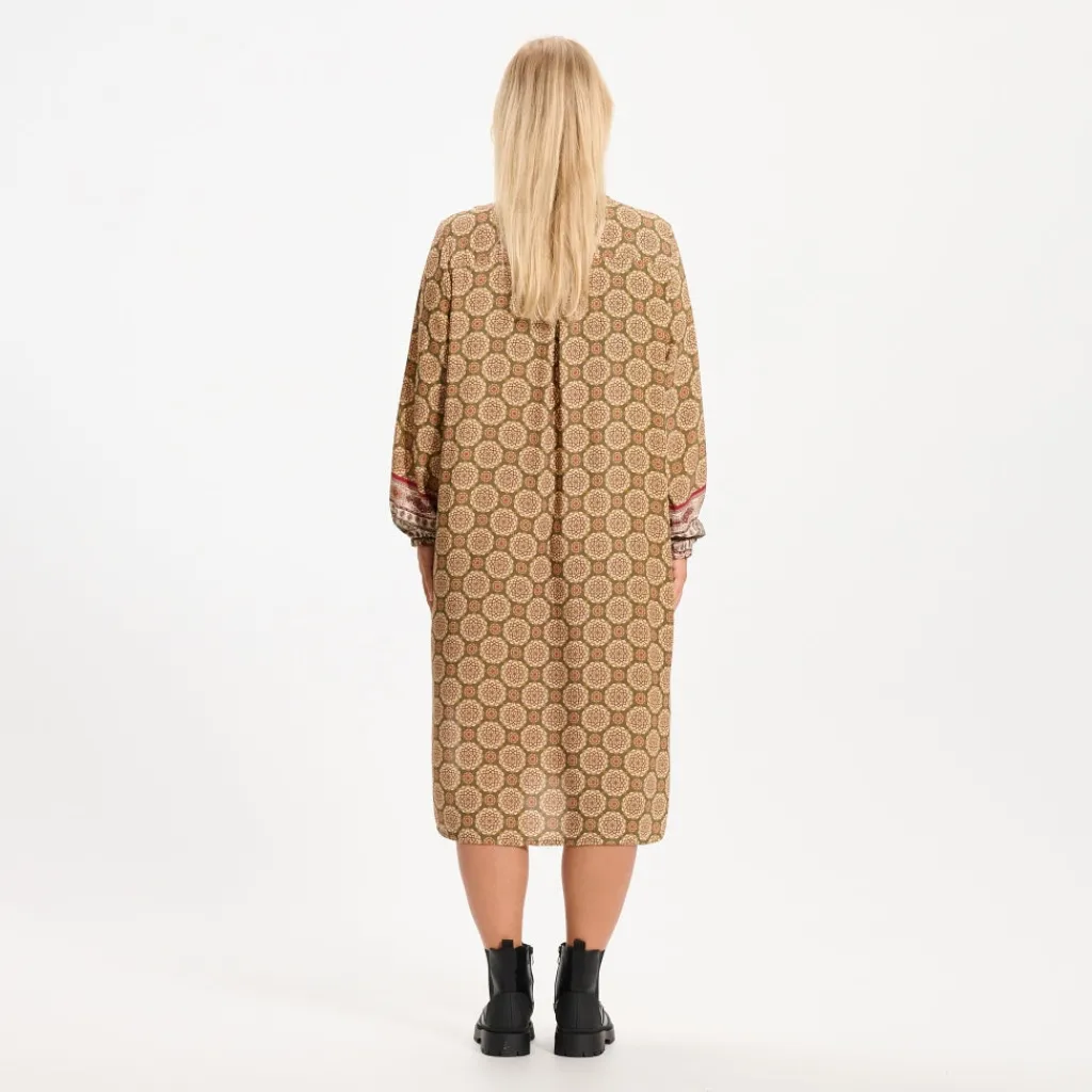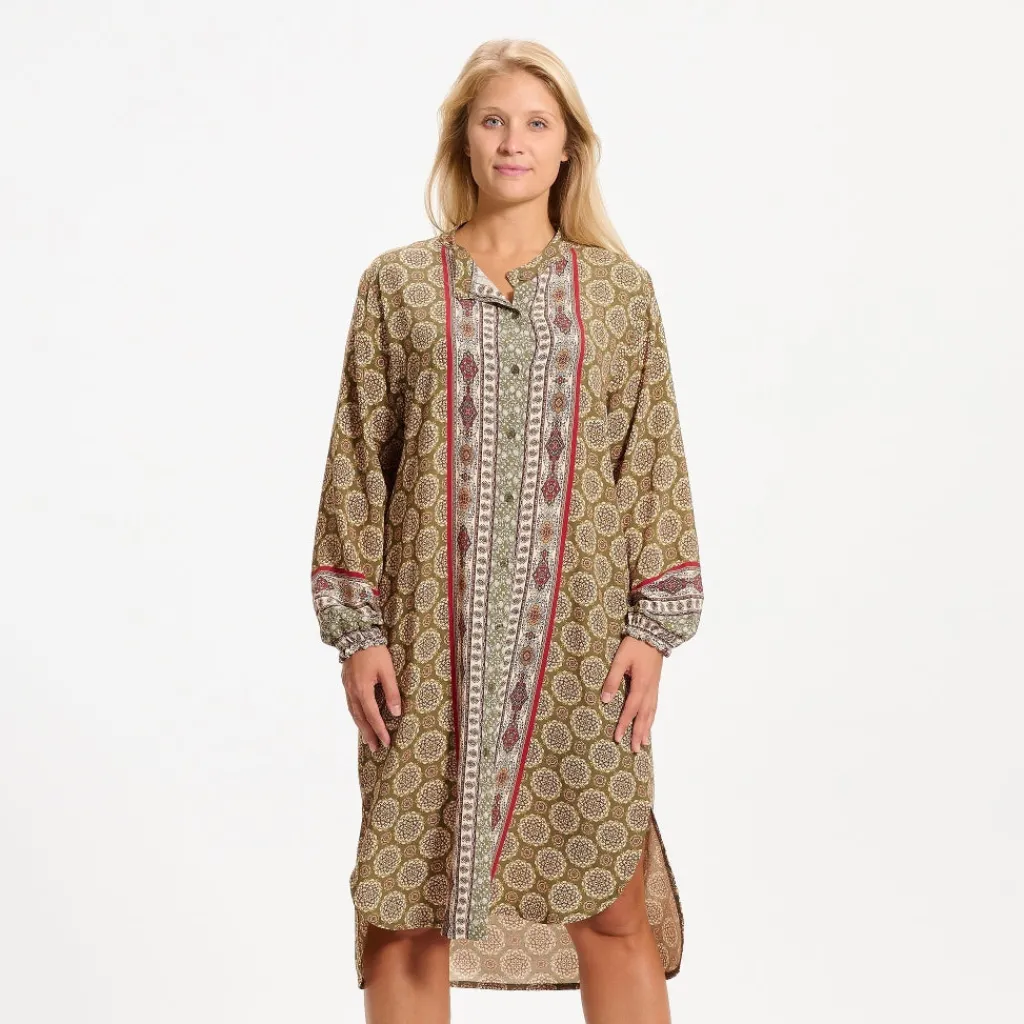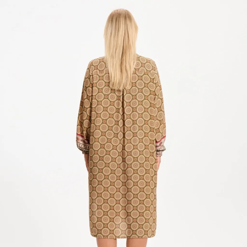 Smuk printet kjole fra Marta Du Cháteau. Kjolen er gennemknappet og har elastik i ærmet. Perfekt både at styles med strømpebukser eller et par jeans.