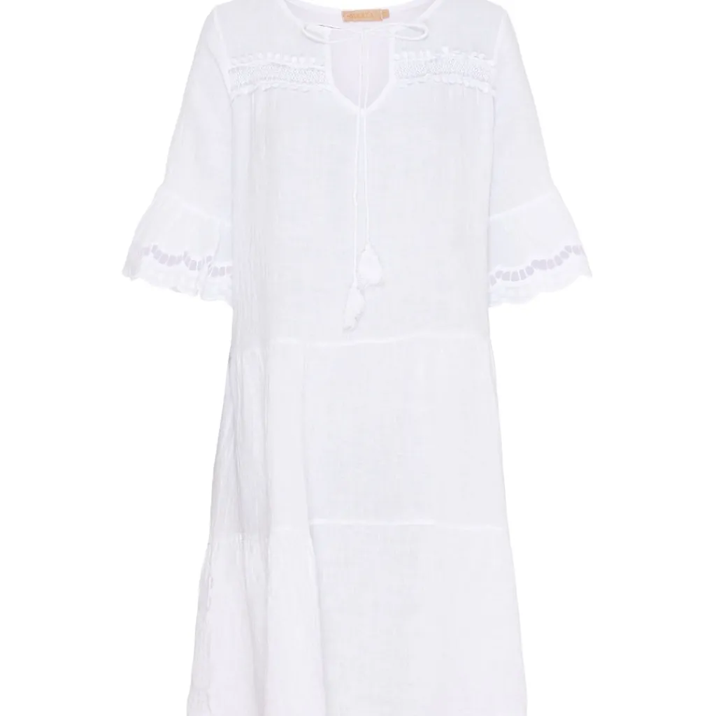 Skøn hør kjole fra Marta Du Cháteau med fine blondedetaljer ved ærmerne.