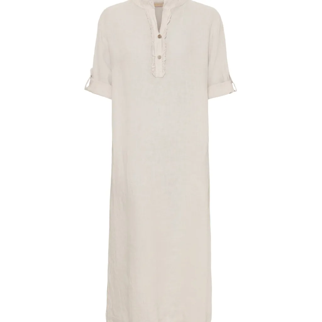 Smuk kjole med knapper og kalvekrøs. Kjolen passer perfekt till sommeren, med et par sandaler.