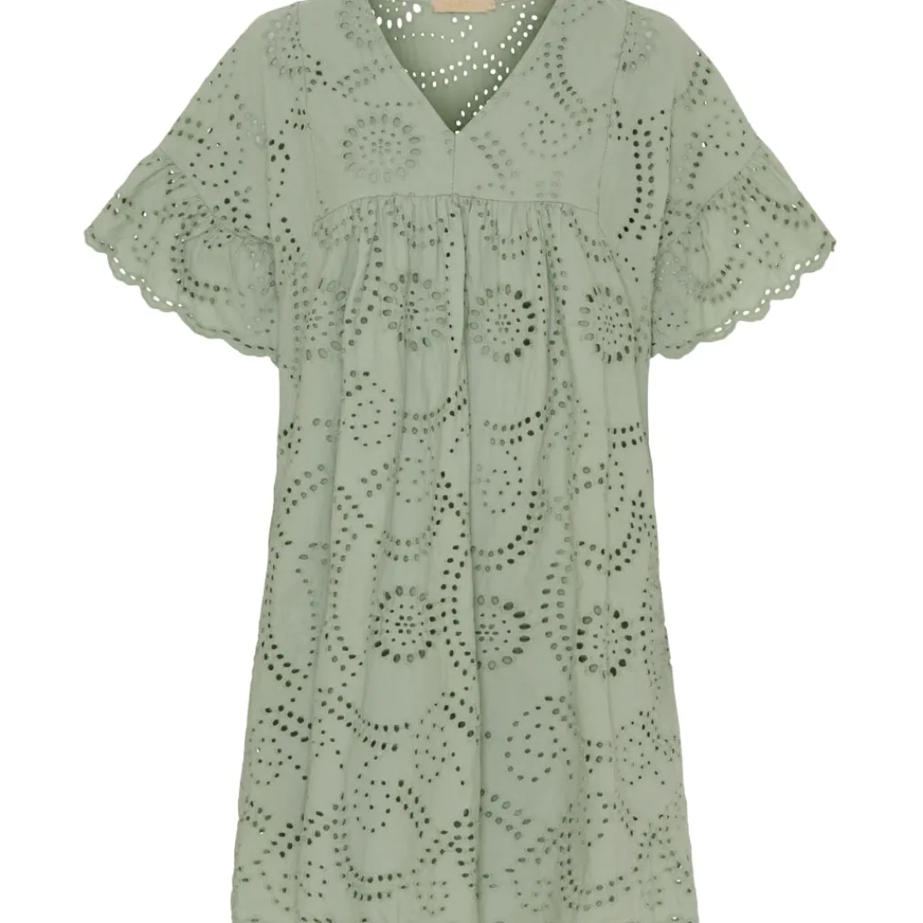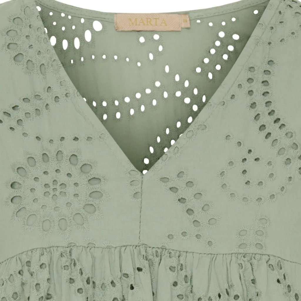 Virkelig sød broderie anglaise kjole fra Marta med v-hals.