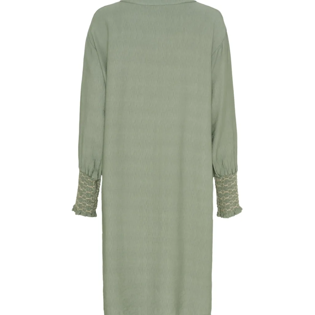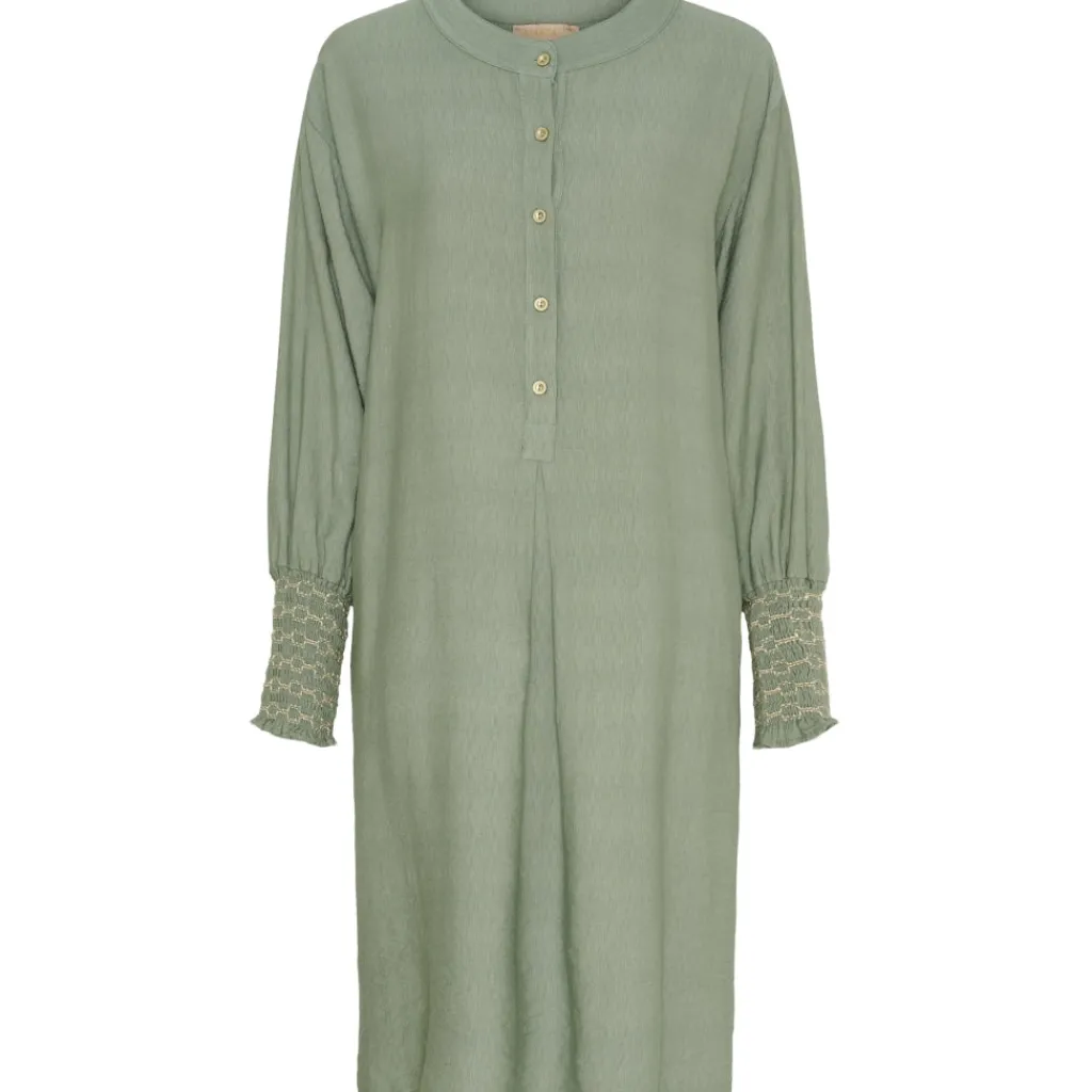 Fin og klassisk kjole med knapper langs fronten og fine detaljer ved håndleddene. Kan både bruges med tights eller leggings under. Tilføj et par sneakers for et casual hverdagslook, eller et par støvler for et mere festligt look.