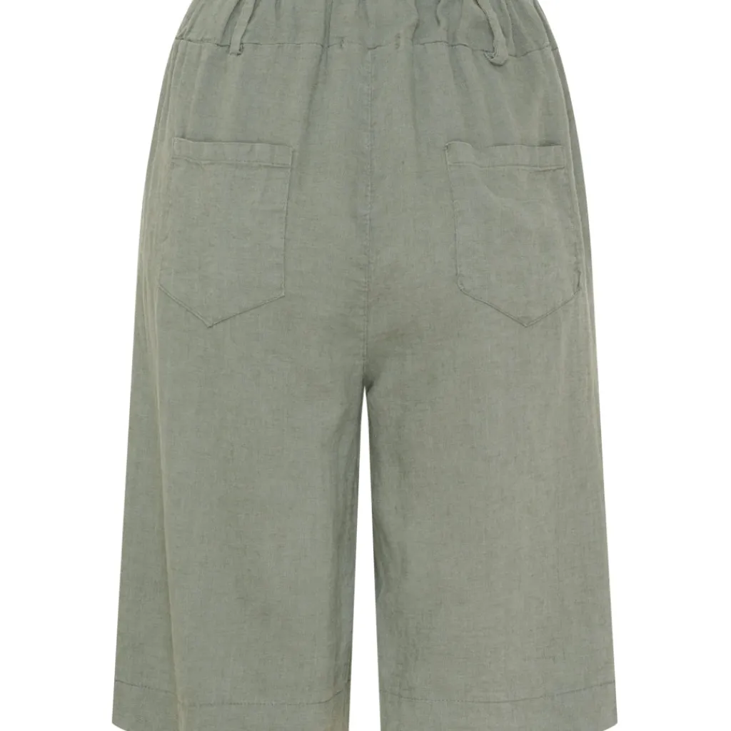 Cool mellemlang shorts fra Marta du Château i hør. De har bæltestrop i taljen, samt lommer både foran og bagpå. Shortsene er alsidige, og kan bruges med en t-shirt, skjorte eller strik.