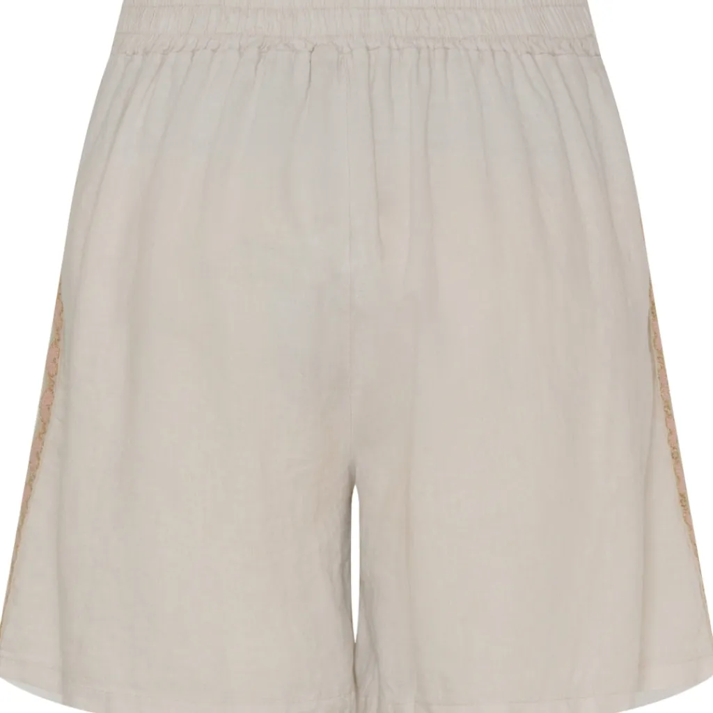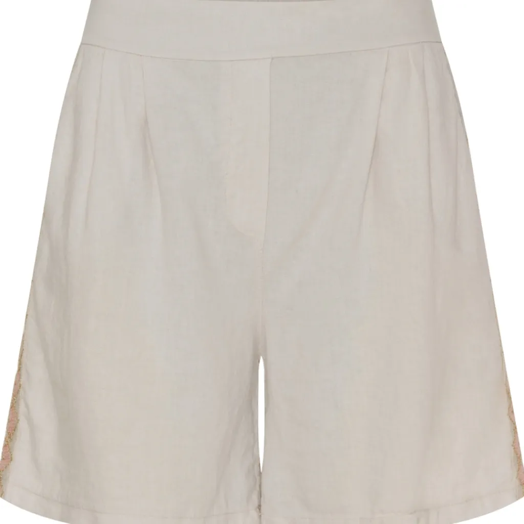 Smarte shorts i hørblanding med mønster på siderne.