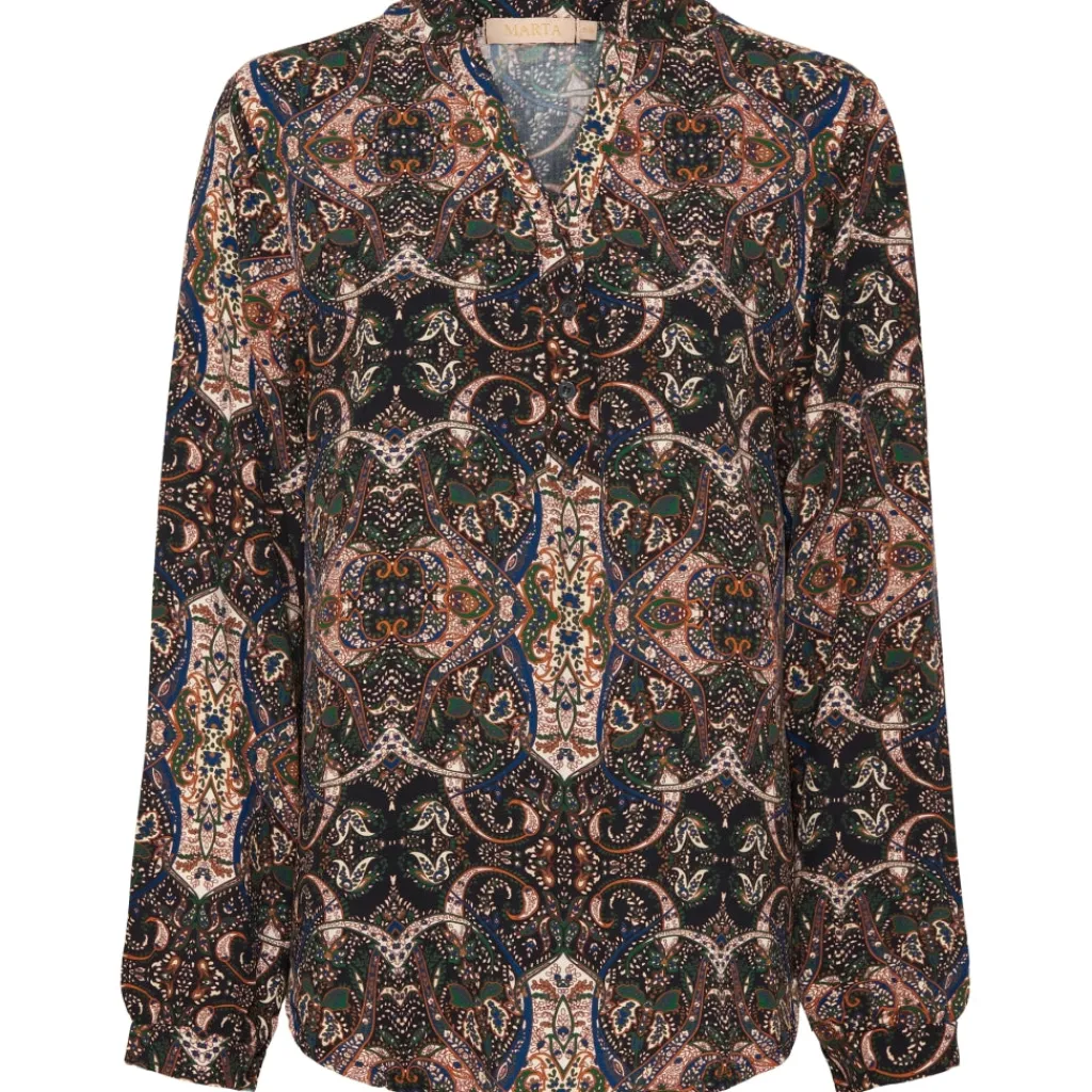 Marta du Chateau tunika i blød og behagelig kvalitet. Blusen er med v udskæring og har knapper foran.