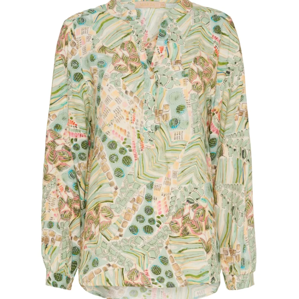 Marta du Chateau tunika i blød og behagelig kvalitet. Blusen er med v udskæring og har knapper foran.