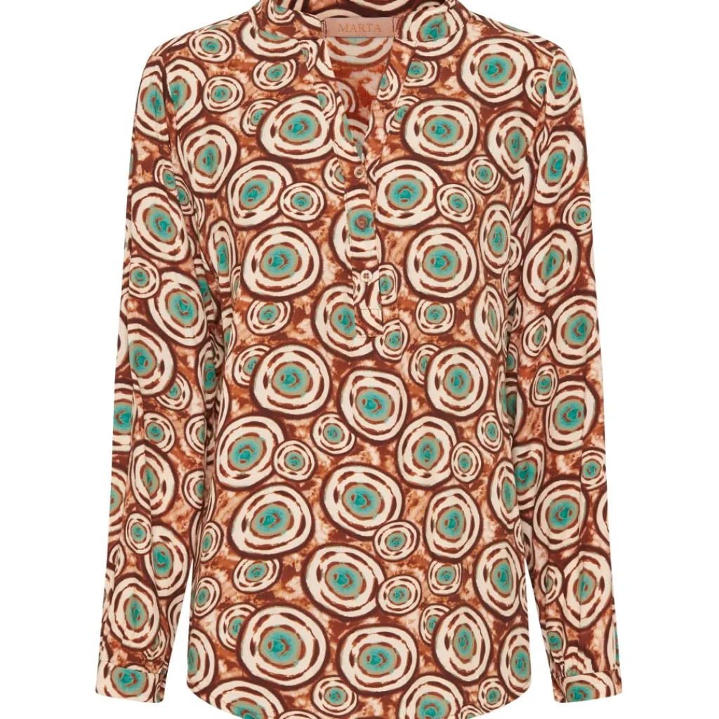 Marta du Chateau tunika i blød og behagelig kvalitet. Blusen er med v udskæring og har knapper foran.
