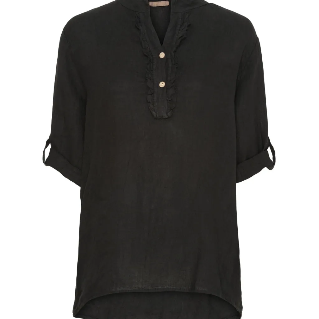 Sød hør bluse fra Marta Du Cháteau med knapper foran samt flæse detalje.