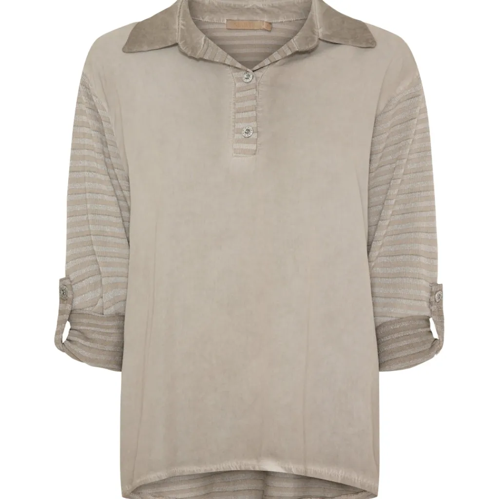Smart bluse med glimmerdetaljer og ærmer der kan foldes op.