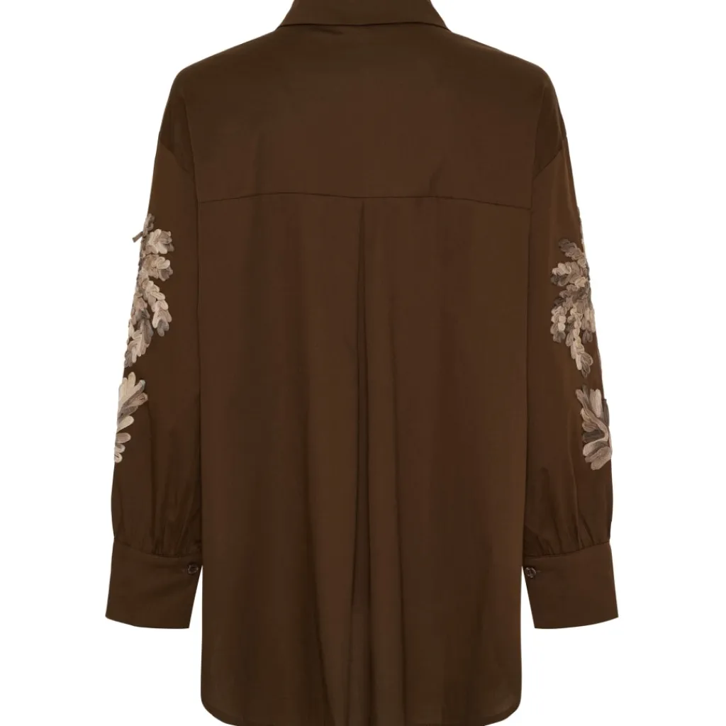 Super fin skjorte fra Marta du Château med broderi-detalje på ærme. Skjorten er gennemknappet og har krave, samt længere bagtil. Den er helt perfekt til både hverdag og finere brug.