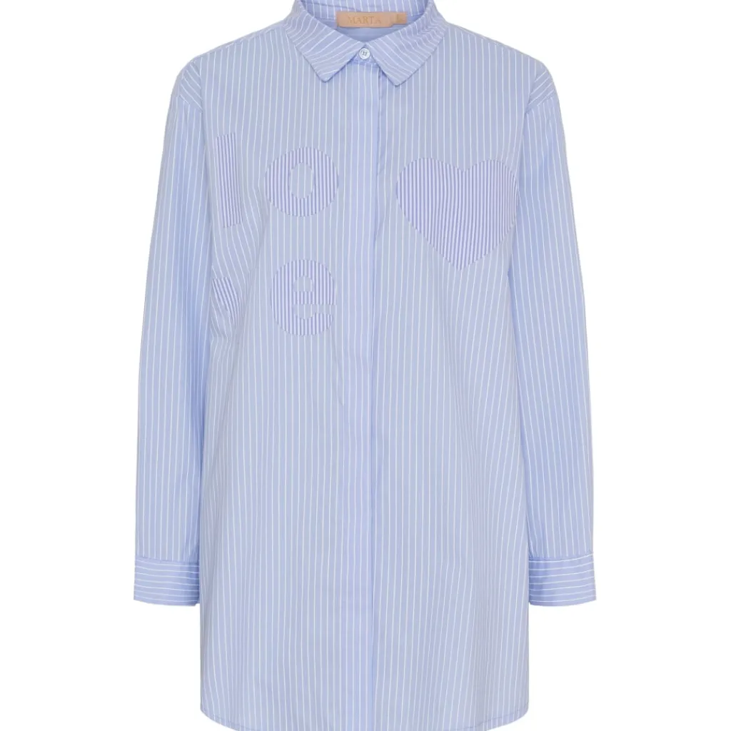 Fin og feminin skjorte fra Marta Du Château med seje detaljer. Skjorten har et klassisk stribet design, gennemknapning og et hjerte samt bogstaver, der giver et unikt touch. Til hverdag, brug den med jeans og sneakers eller støvler.