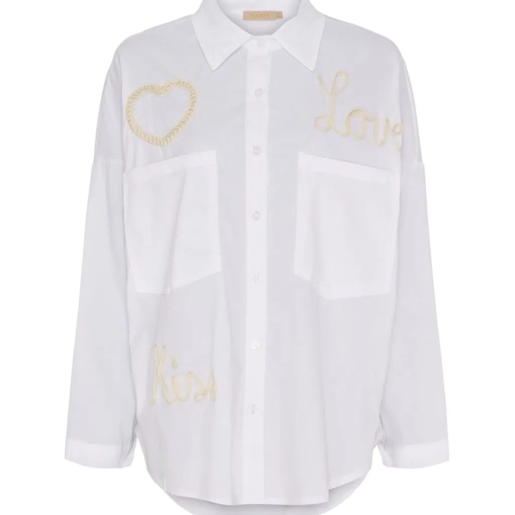 Smukkeste skjorte fra Marta Du Château med brystlommer, krave og cool detaljer. Strikken kan både bruges til hverdag med jeans og sneakers, og til finere anledninger med et skirt og støvler.
