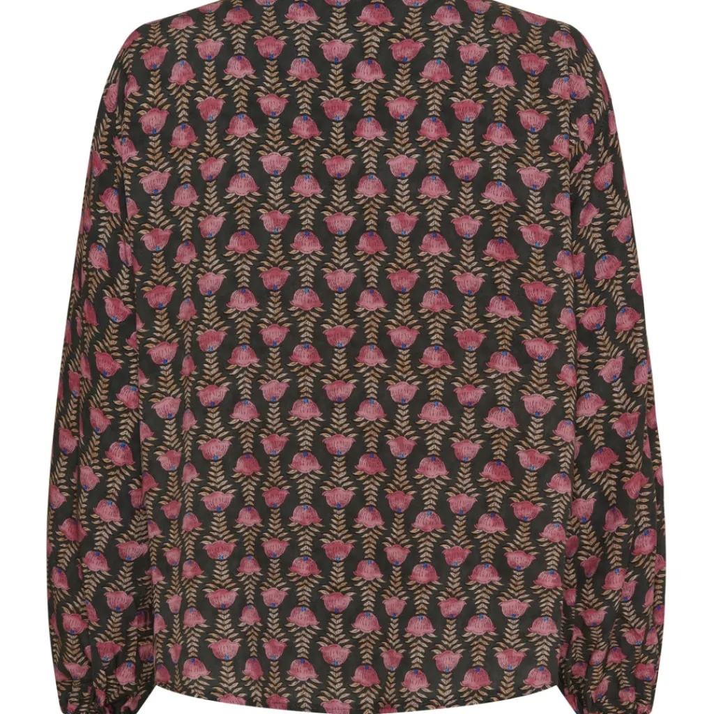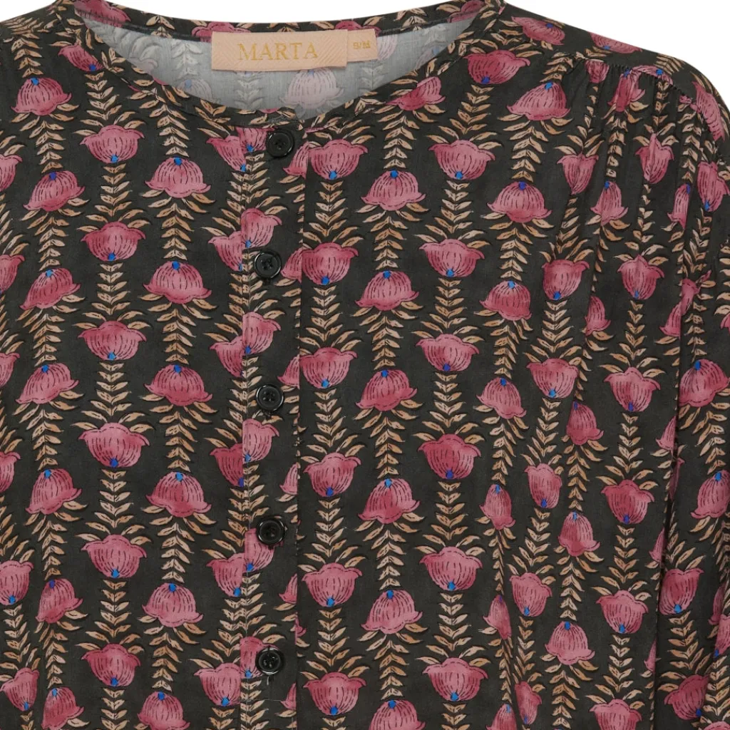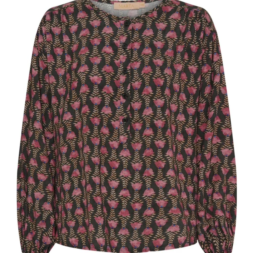 Printet bluse fra Marta Du Cháteau med rund hals, knapper foran samt elastik ved ærmerne.