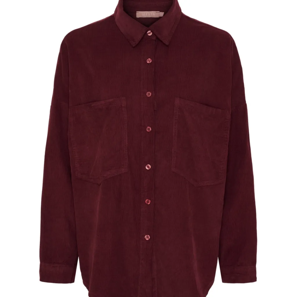 Klassisk og fin skjorte fra Marta Du Château i baby fløjl. Skjorten har gennemgående knapper, to brystlommer og krave. Den er super alsidig og kan både styles med et par jeans og bukser fra samme serie.
