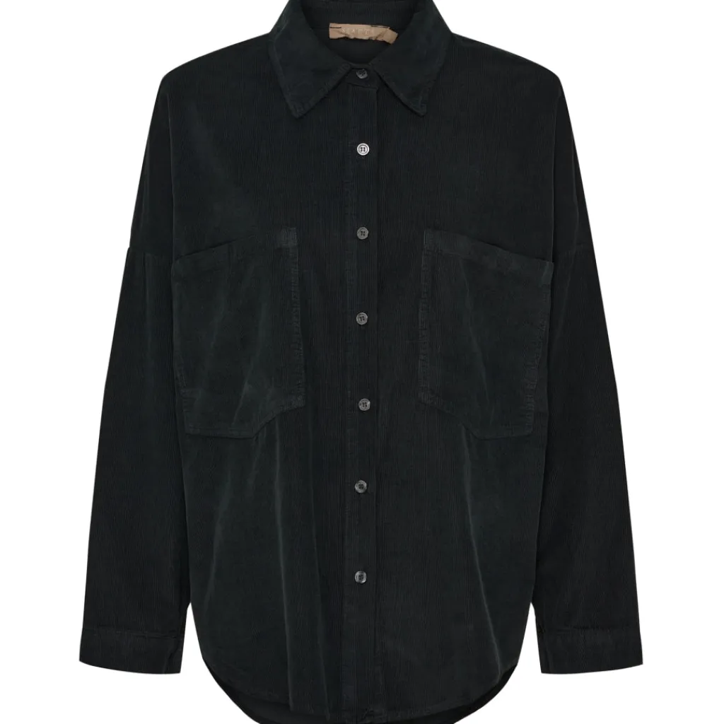 Klassisk og fin skjorte fra Marta Du Château i baby fløjl. Skjorten har gennemgående knapper, to brystlommer og krave. Den er super alsidig og kan både styles med et par jeans og bukser fra samme serie.