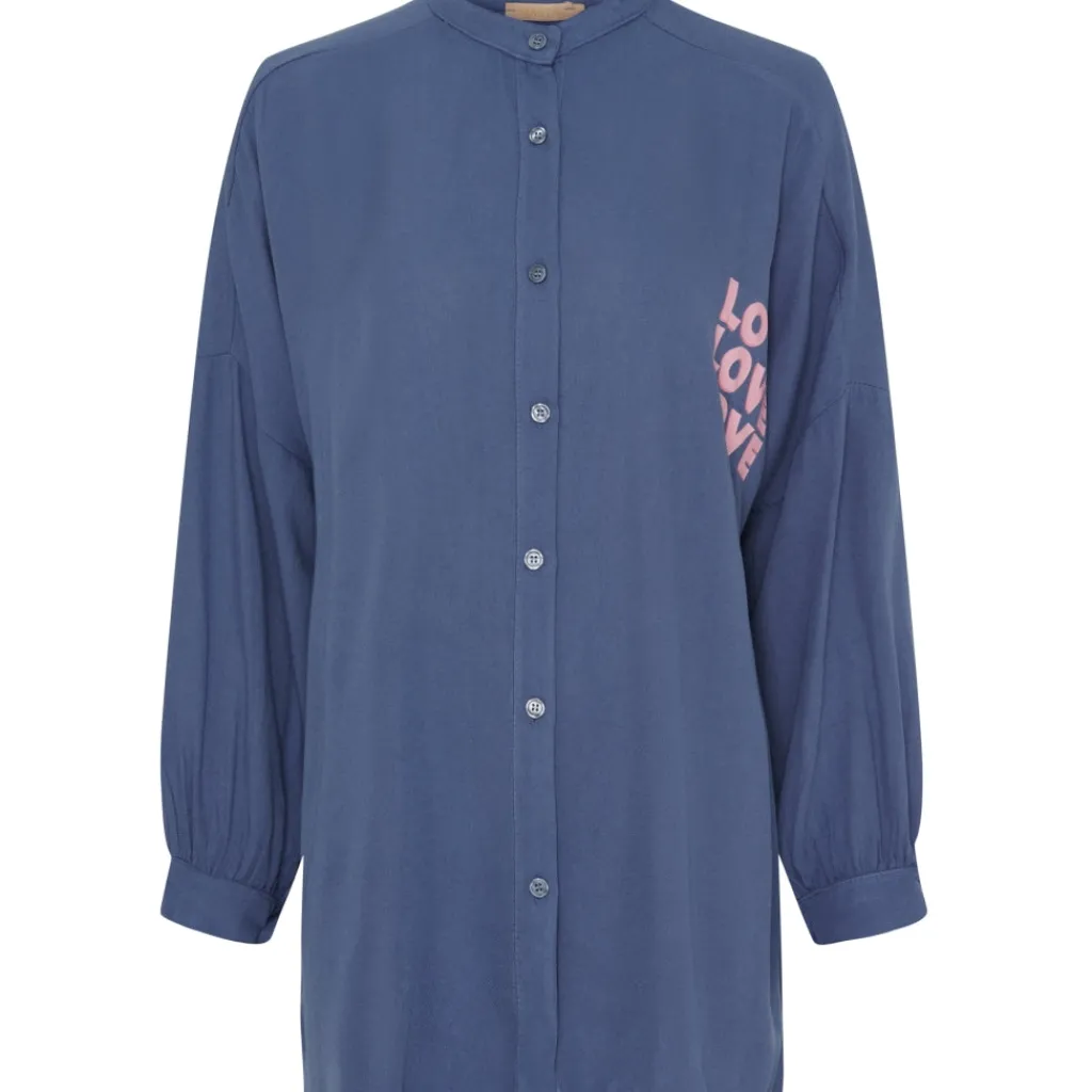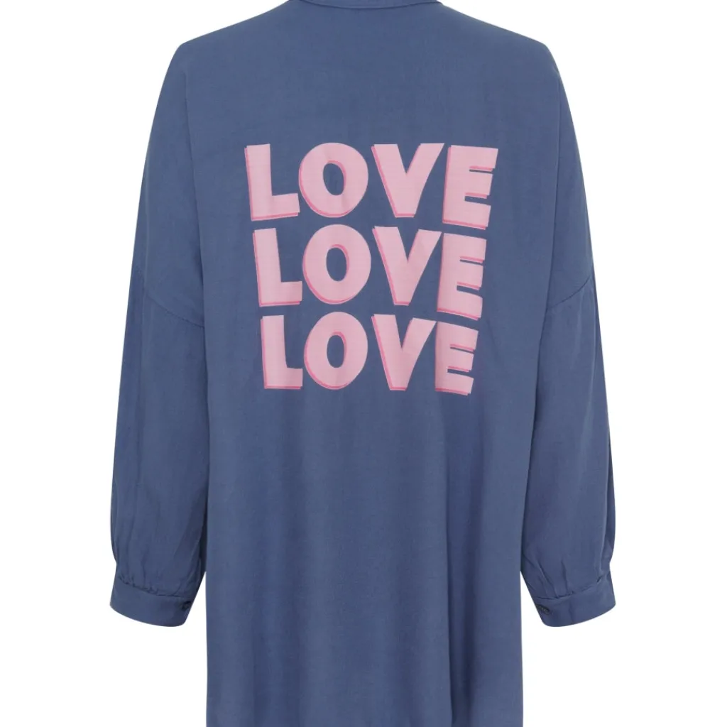 Smuk skjorte med “LOVE” print fra Marta du Château. Skjorten er gennemknappet og har ærmer der kan opsmøges.