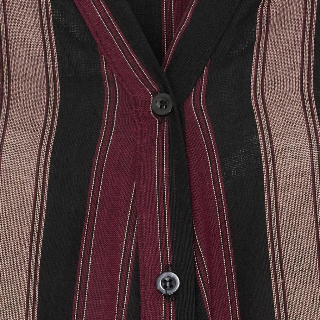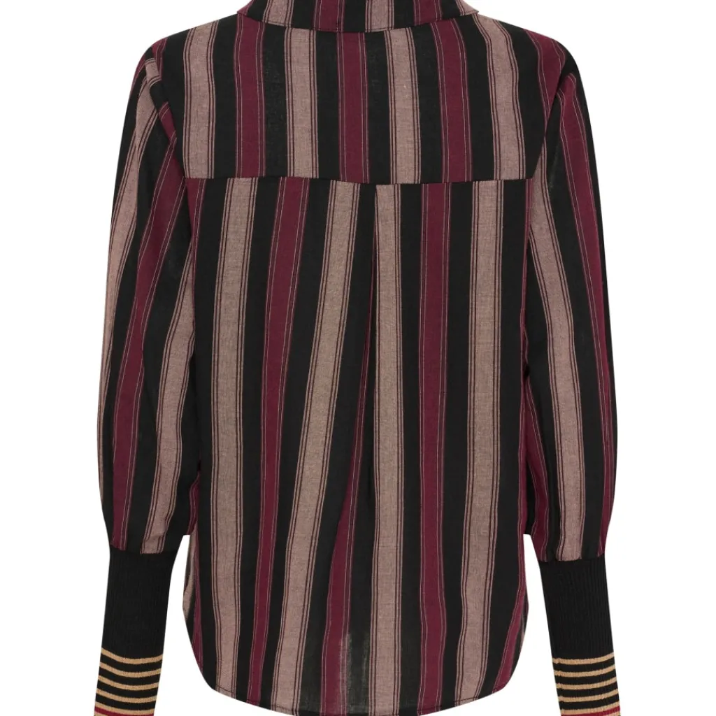 Smart stribet skjorte fra Marta du Château med ribkant ved ærme. Skjorten har V-udskæring med en lille krave og gennemgående knapper. Kan styles med et par jeans og støvler eller sneakers.